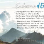 - En chemin d’Essentiel – dimanche 20 juin à 9h30[TERRE BLEU CIEL] Délai pour s’inscrire: mercredi 16 juin Un temps de marche dans la nature, en présence…Marcher pour se relier au SouffleMarcher pour s’émerveiller de la Beauté du mondeMarcher pour partager avec l’autre un fragment d’Essentiel Détails et inscriptions