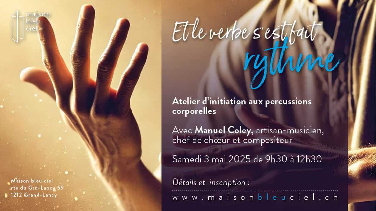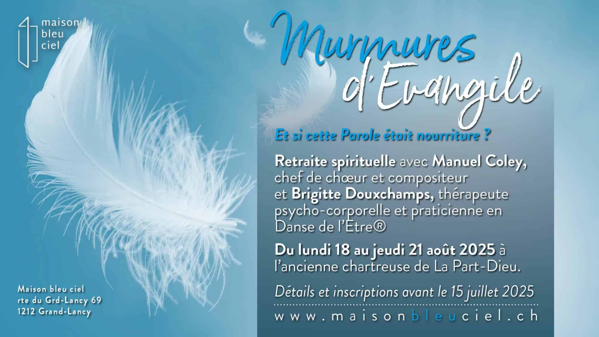 En cas de difficulté pour vous inscrire, n'hésitez pas à nous envoyer un mail à info@maisonbleuciel.chLe Vendredi-Saint nous invite à traverser le silence. Un silence qui n’est pas vide, mais habité. Un silence qui ouvre un passage, un espace où la vie respire autrement. Ce jour-là, nous vous invitons à une expérience simple et profonde : chanter pour faire silence, faire silence pour chanter. Avec Manuel Coley, nous entrerons dans Lire plus ...