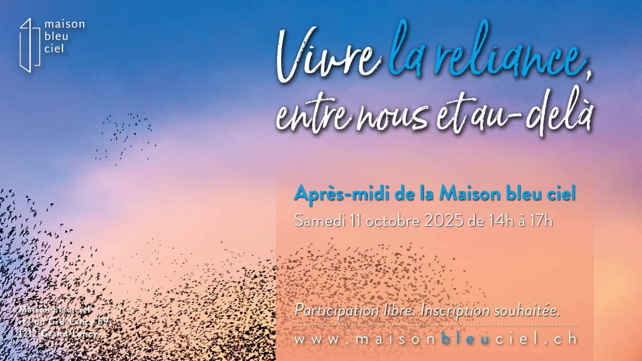 la Maison bleu ciel Rte du Grand-Lancy 69, Grand-Lancy, SuisseEn cas de difficulté pour vous inscrire, n'hésitez pas à nous envoyer un mail à info@maisonbleuciel.chVivre la reliance, entre nous et au-delà La Maison bleu ciel propose une après-midi ouverte à tou-te-s, centrée sur la vie du lieu, ses perspectives et l’écoute mutuelle. Détails
