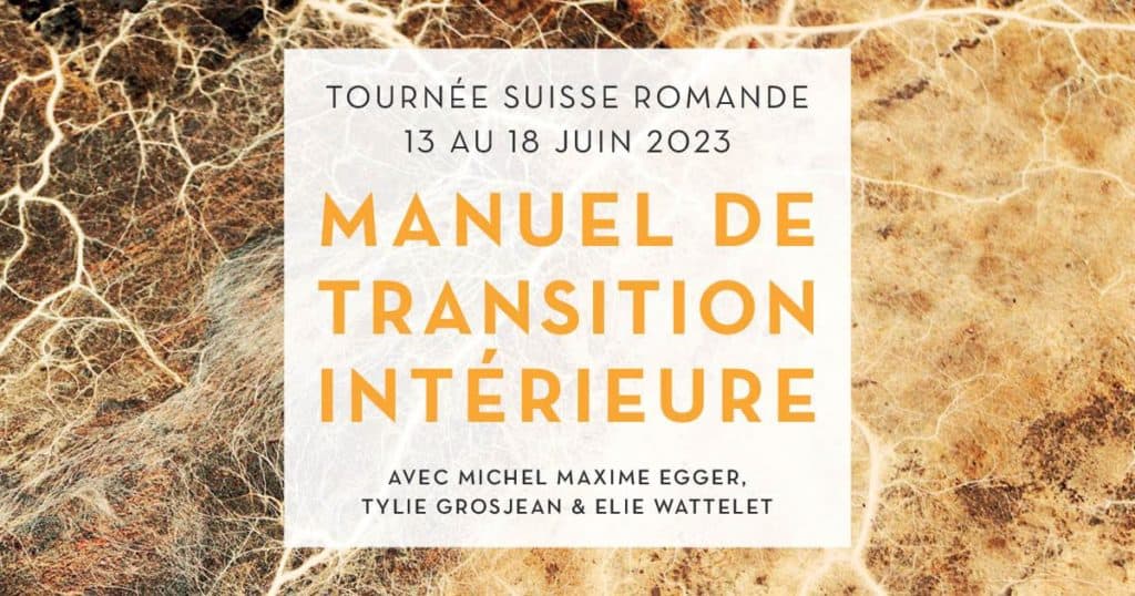 À l’occasion de la sortie du livre Reliance : Manuel de transition intérieure (Actes Sud, 2023), les co-auteur·e·s de l’ouvrage – Michel Maxime Egger, Tylie Grosjean et Elie Wattelet – se réunissent pour nous partager leurs réflexions et nous faire découvrir et vivre de nouvelles pratiques de transition intérieure lors d’une tournée en Suisse romande.