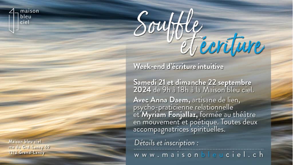 Dans un cadre sécurisant, vivre un voyage intérieur, intuitif et guérisseur au travers de l’expérience de l’écriture intuitive. Cheminer vers un approfondissement de la conscience de l’être corporel, psychologique et spirituel, jalonné de quelques repères des Écritures.