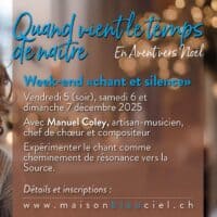 La Maison bleu ciel a la grande chance de pouvoir compter sur un compositeur dont le travail rejoint profondément ce que nous cherchons à vivre ici. Manuel Coley compose des chants courts, méditatifs et accessibles, qui accompagnent nos temps de silence et de présence. Nous sommes heureux de pouvoir les partager avec d’autres lieux, d’autres Lire plus …