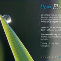 Un rendez-vous en ligne de méditation partagée dans une alternance d’écoute, de silence et d’échanges autour d’une « étincelle » de François Cassingena-Trévedy, moine. Comment, dans le silence, ces quelques mots résonnent en moi ? Comment, dans le partage, leur résonance est enrichie, amplifiée ? En quoi cette méditation partagée peut-elle inspirer mon cheminement intérieur Lire plus …